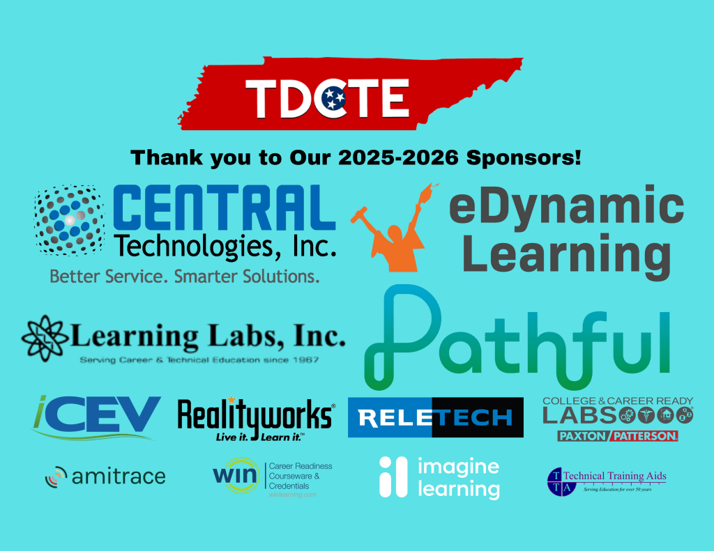 TDCTE is currently accepting sponsors for the 2025-2026 fiscal year. Sponsoring TDCTE is your chance to gain prime exposure with CTE Directors from across Tennessee. Interested in becoming a sponsor for the 2025-2026 fiscal year? Click here to view the prospectus.